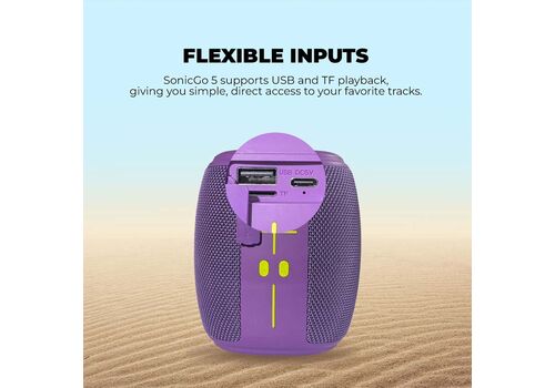 Ανακάλυψε τον απόλυτο συνδυασμό ήχου, στυλ και φορητότητας με το SonicGO! 5. Σχεδιασμένο για να σε συνοδεύει παντού, προσφέρει δυνατό και καθαρό ήχο με ενισχυμένο μπάσο, σε compact μέγεθος που χωράει παντού.