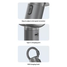 USAMS φορητός ανεμιστήρας LU01 με 5 ταχύτητες, 2000mAh, μαύρος