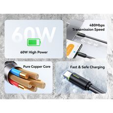USAMS καλώδιο USB-C US-SJ734, 60W, 480Mbps, 1m, μαύρο