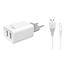 POWERTECH φορτιστής τοίχου PT-777, καλώδιο Lightning, 2x USB 2.1A, λευκό