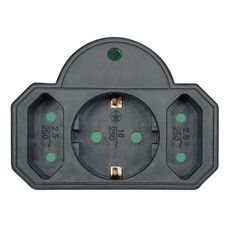 POWERTECH αντάπτορας ρεύματος PT-817, 1x schuko, 2x euro, 16A, μαύρος