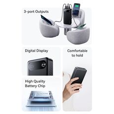USAMS power bank CD249 με οθόνη, 3x θύρες εξόδου, 10000mAh, PD20W, μαύρο