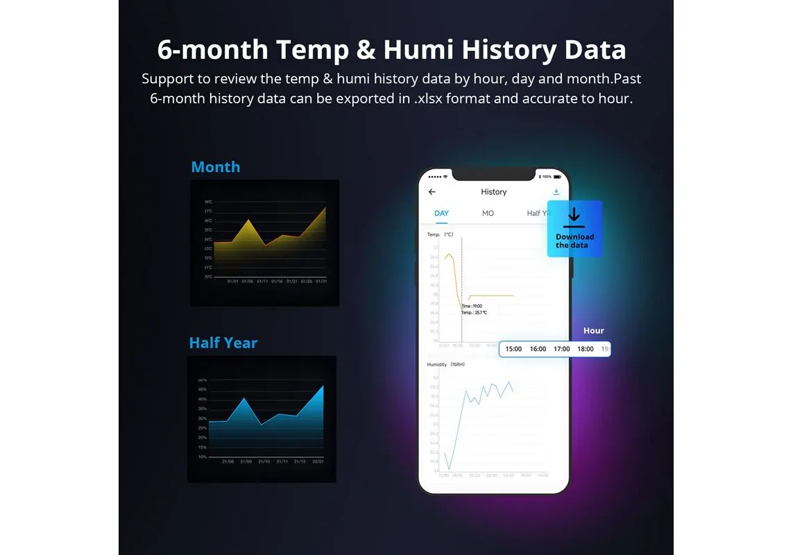 Η εφαρμογή eWeLink παρέχει ιστορικό της παρακολούθησης της θερμοκρασίας και της υγρασίας για έως 6 μήνες, το οποίο μπορείτε να εξάγετε στον αποθηκευτικό χώρο του τηλεφώνου σας.
