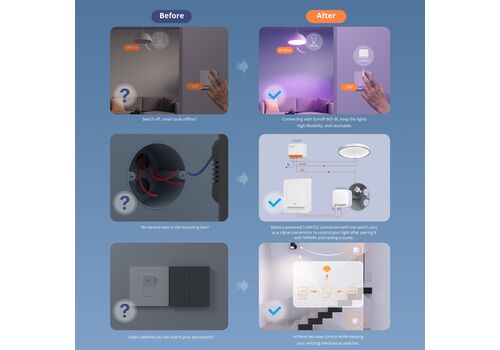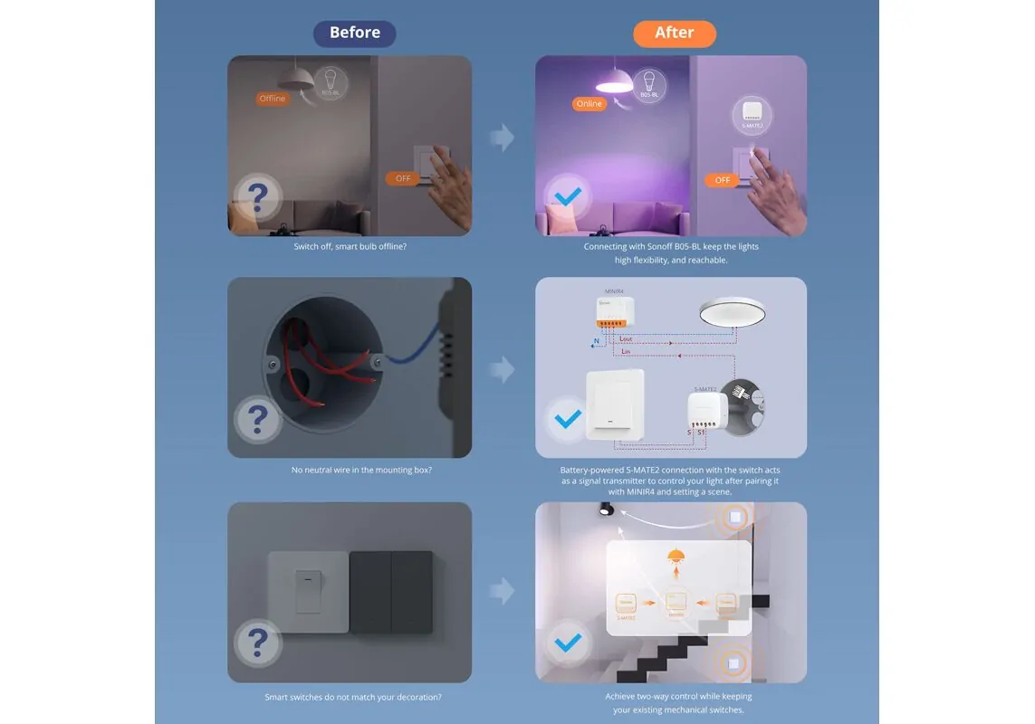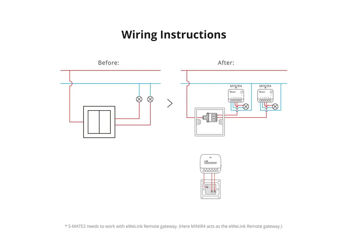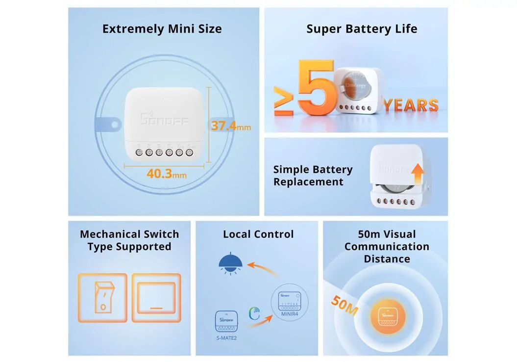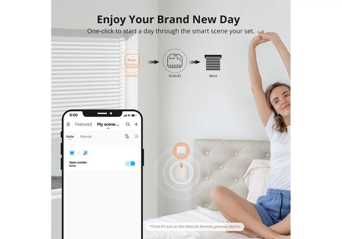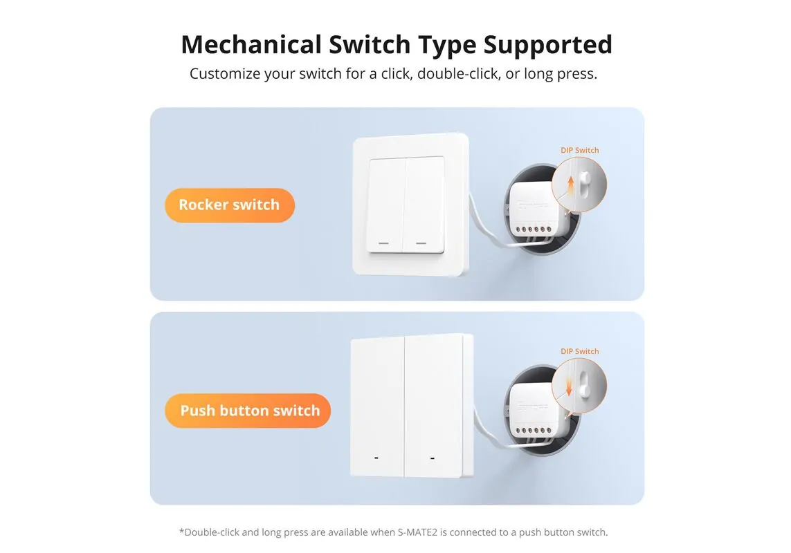 Ο διακόπτης S-MATE2 είναι μια συσκευή, που σε συνδυασμό με smart διακόπτες της Sonoff όπως ο MINIR4 και DUALR3 (πωλούνται ξεχωριστά), σας βοηθά να μετατρέψετε το σπίτι σας σε "έξυπνο σπίτι".