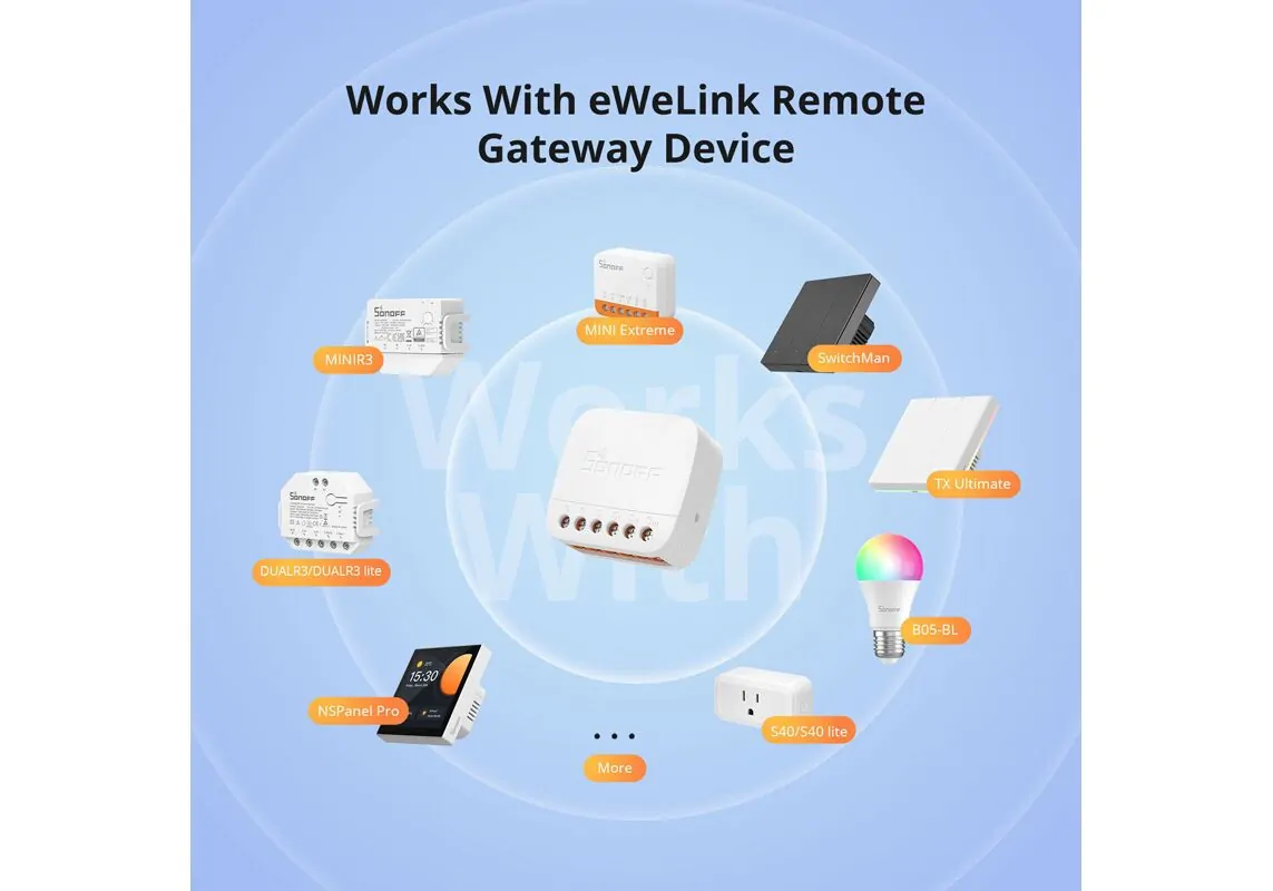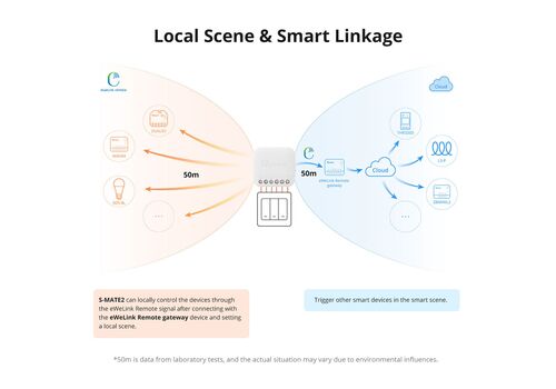 Επικοινωνεί ασύρματα με τους διακόπτες της Sonoff μέσω του eWeLink-Remote signal (εμβέλεια έως 50m) επιτρέποντας σας να ελέγχετε τις συσκευές σας ακόμη και όταν δεν υπάρχει διαθέσιμη σύνδεση στο internet αλλά και να ενεργοποιήσετε περισσότερες smart συσκευές στις smart σκηνές σας.