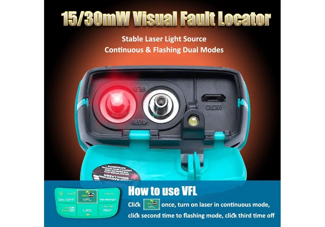 -VFL test distance: 14-16km single mode