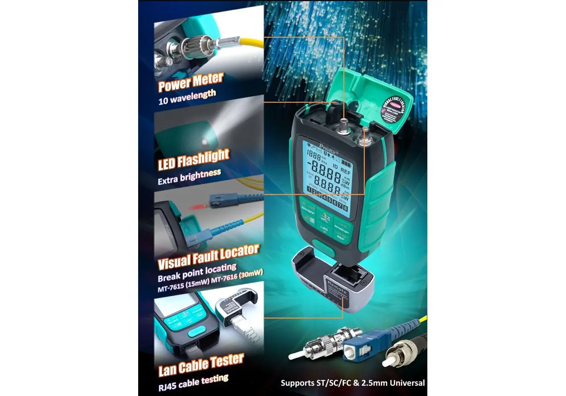 PROSKIT πολύμετρο οπτικών ινών MT-7616, μέτρηση ισχύος & VFL, 30mW