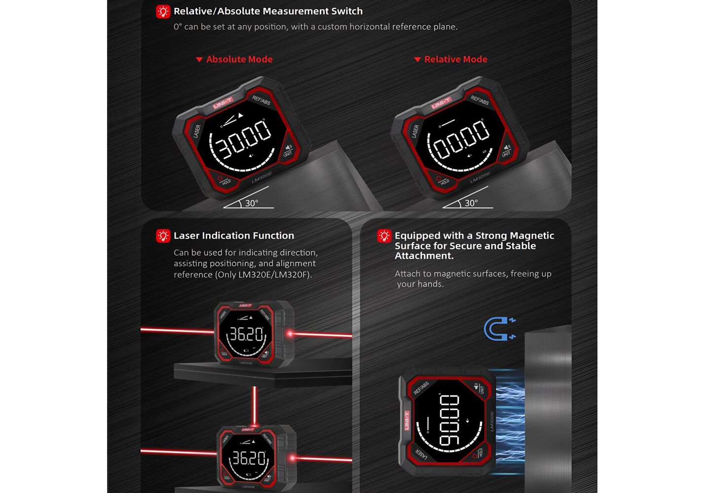 UNI-T ψηφιακό γωνιόμετρο laser LM320E, 4x90°, μαγνητικό σώμα, 1000mAh