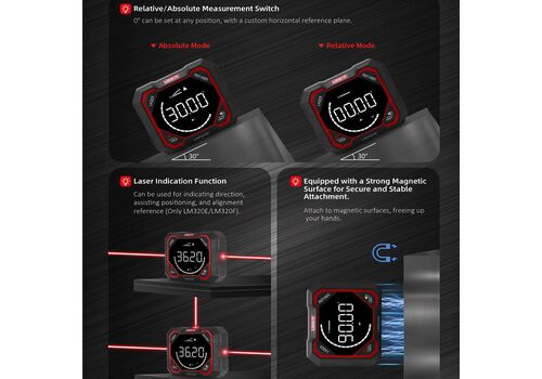 Τα ψηφιακά γωνιόμετρα της σειράς LM320 είναι απαραίτητα εργαλεία μέτρησης για πολλούς τομείς εργασίας, όπως η ξυλουργική, η διακόσμηση κτιρίων, εργασίες πολιτικών μηχανικών κ.α.