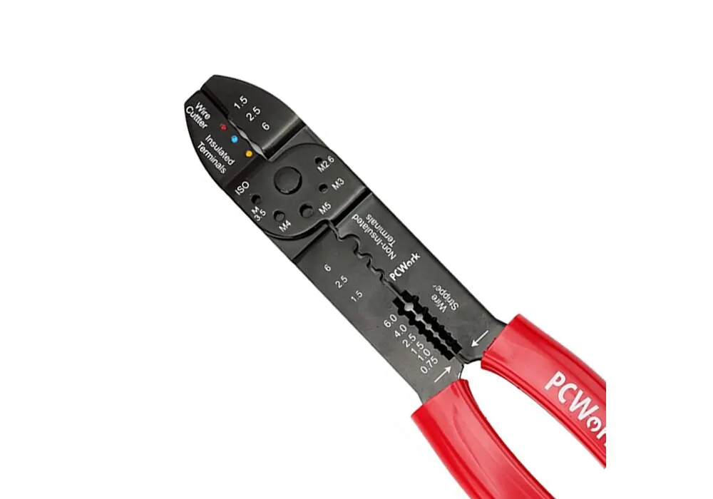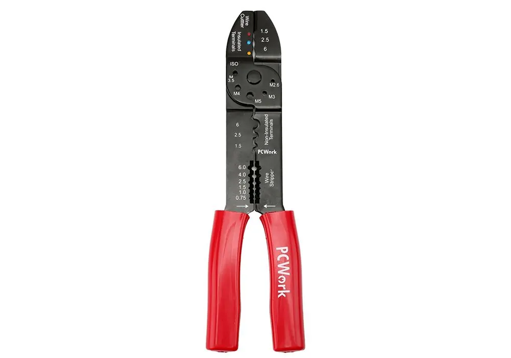 - Συνδυαστικό εργαλείο 4-σε-1: πένσα πτύχωσης, απογυμνωτής καλωδίων, κόφτης καλωδίων και κόφτης σπειρωμάτων σε μία συσκευή