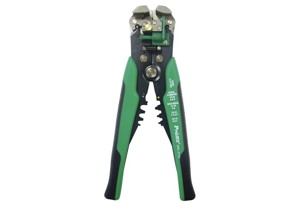 Αυτόματη πρέσα ακροδεκτών της PROSKIT, ιδανική για κοπή, απογύμνωση και πτύχωση καλωδίων.
