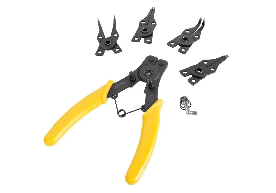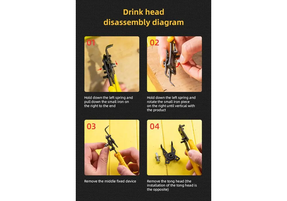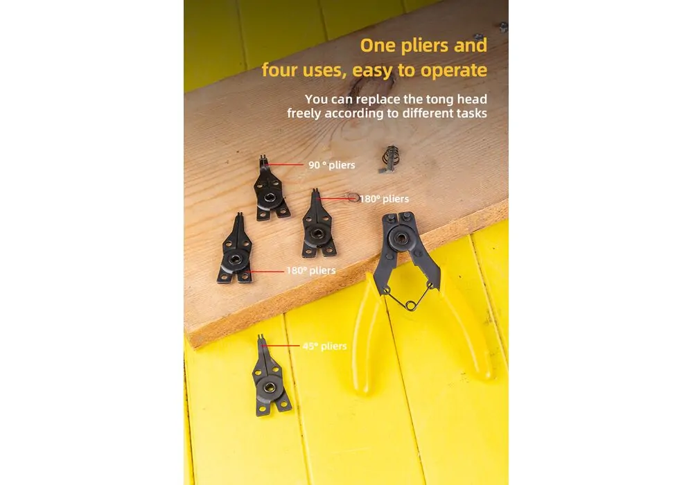 Ασφαλειοτσίμπιδο της Deli με 4 κεφαλές, κατάλληλες για διαφορετική χρήση.