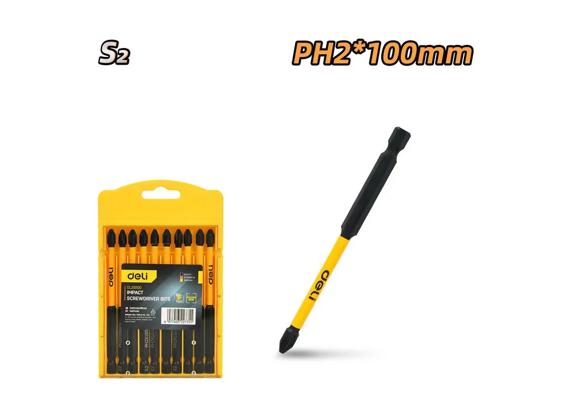 DELI σετ μύτες κατσαβιδιού DL251100 για δράπανο, σταυρωτές, PH2x100mm, 10τμχ