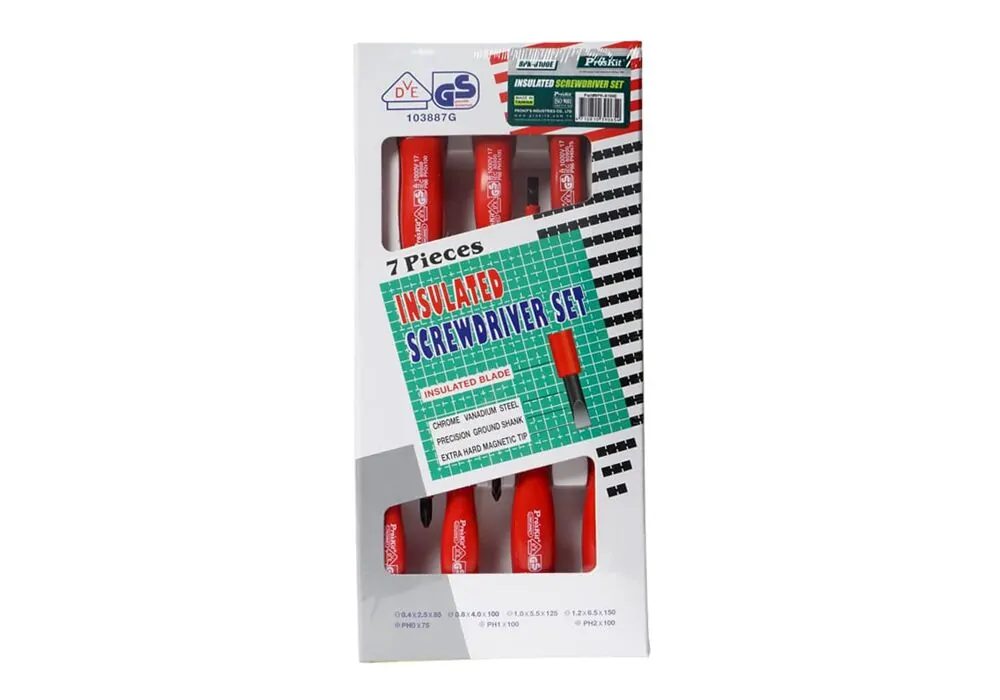 Σετ κατσαβιδιών της PROSKIT το οποίο αποτελείται από 7 κατσαβίδια ηλεκτρολόγου με μόνωση 1000V.