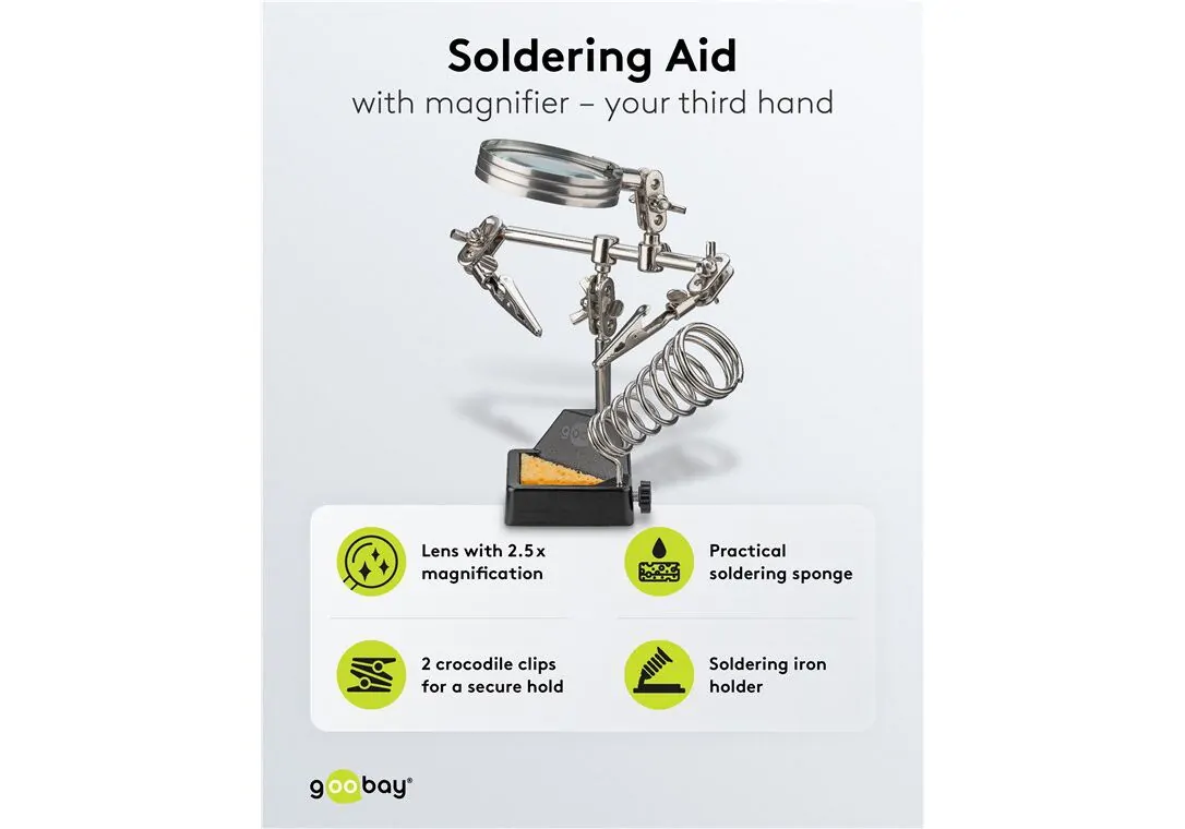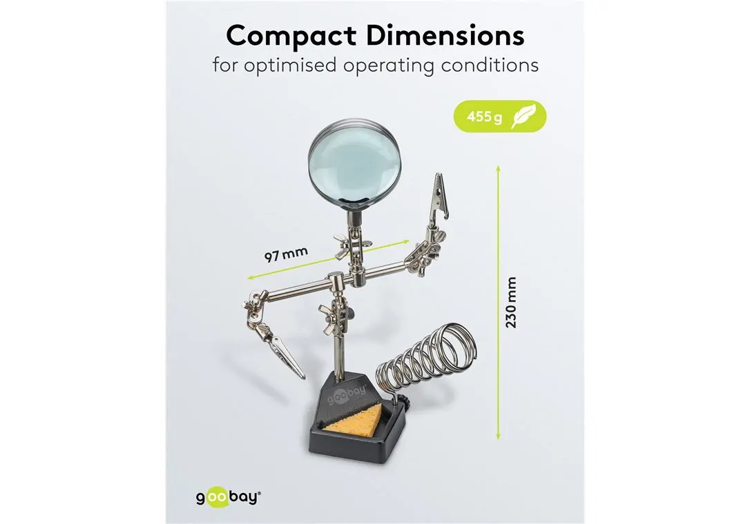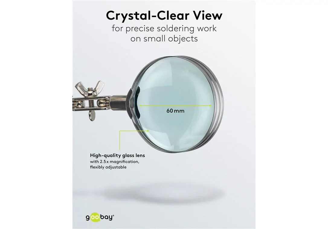 GOOBAY βάση στήριξης πλακέτας 76560 με μεγεθυντικό φακό & θέση για κολλητήρι, 2x βραχίονες, μαύρη