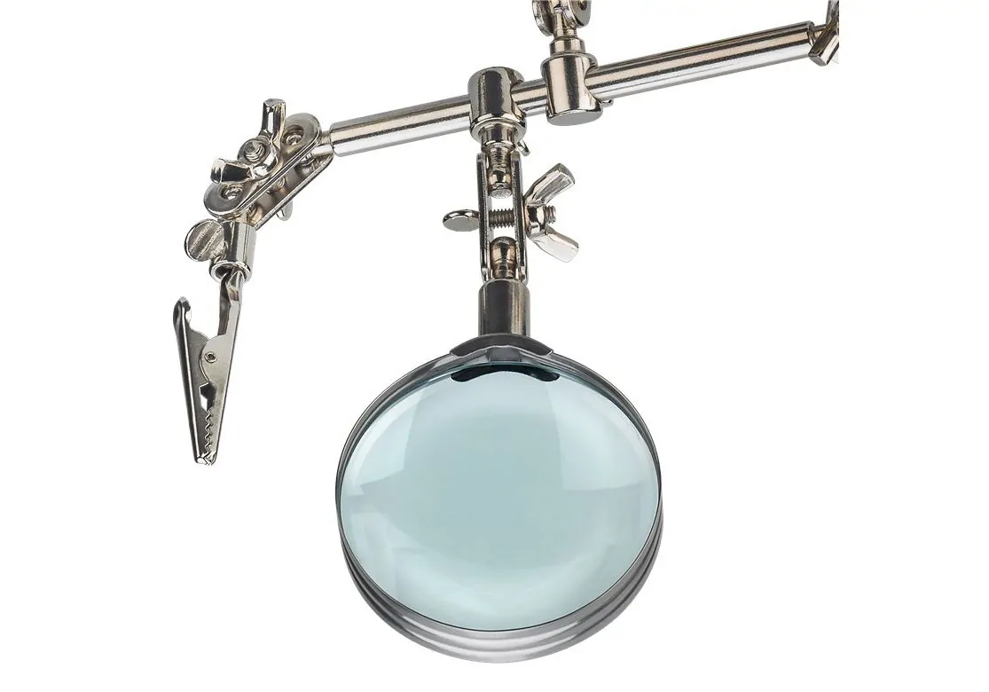 Εξοπλίζεται με μεγεθυντικό φακό 2.5x για λεπτομερείς εργασίες και θέση για κολλητήρι που διευκολύνει την εμπειρία της εργασίας.