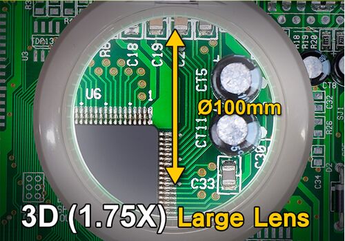 Μεγεθυντικός φακός 3D της PROSKIT διαμέτρου 100mm, με μεγέθυνση 1.75x. Διαθέτει φωτιστικό δακτύλιο με 36 SMD LED υψηλής απόδοσης για άνετη εργασία ακόμη και σε σκοτεινά μέρη. Ο βραχίωνας του είναι εύκαμπτος γεγονός που προσφέρει μεγαλύτερη ευελιξία κατά την διάρκεια των εργασιών σας.