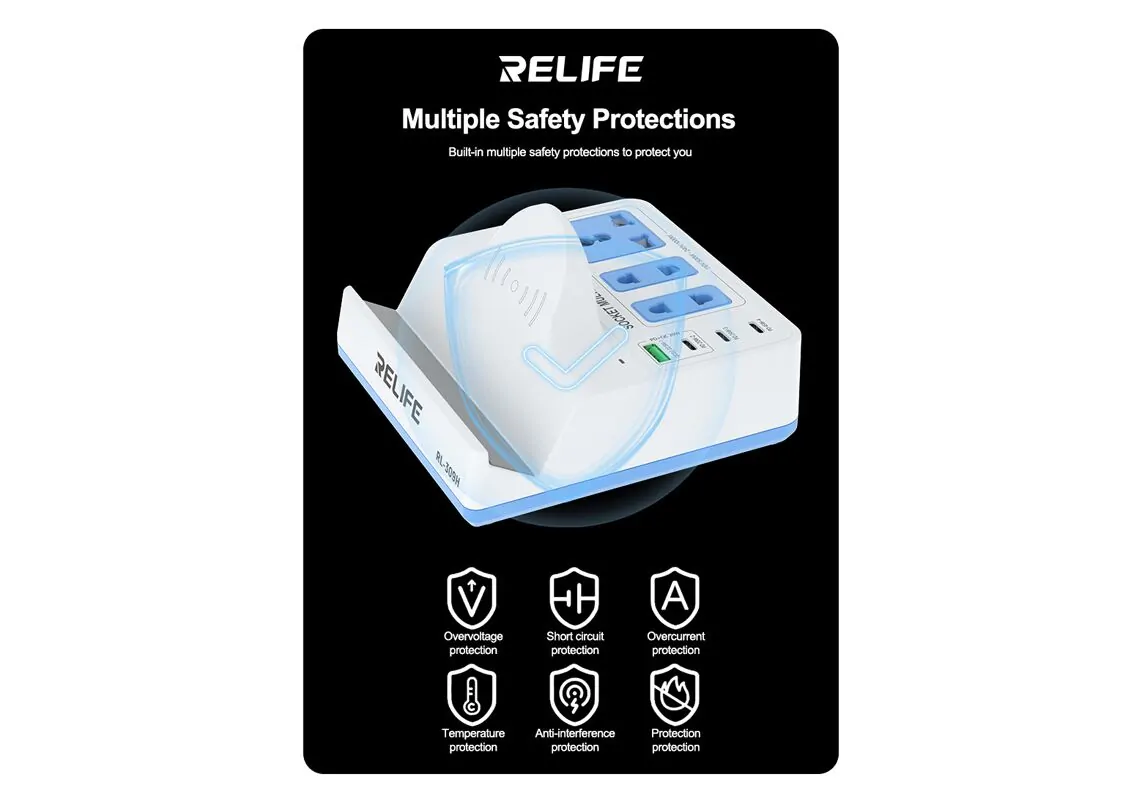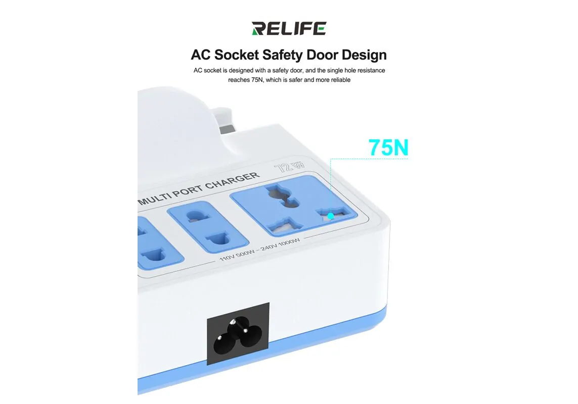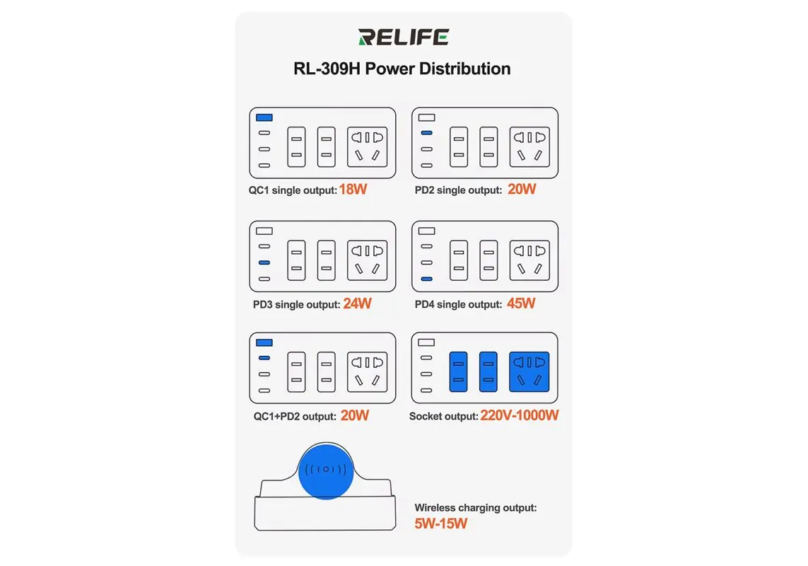 RELIFE σταθμός φόρτισης RL-309H, USB/3x USB-C/3x DC/wireless, 72W, λευκός