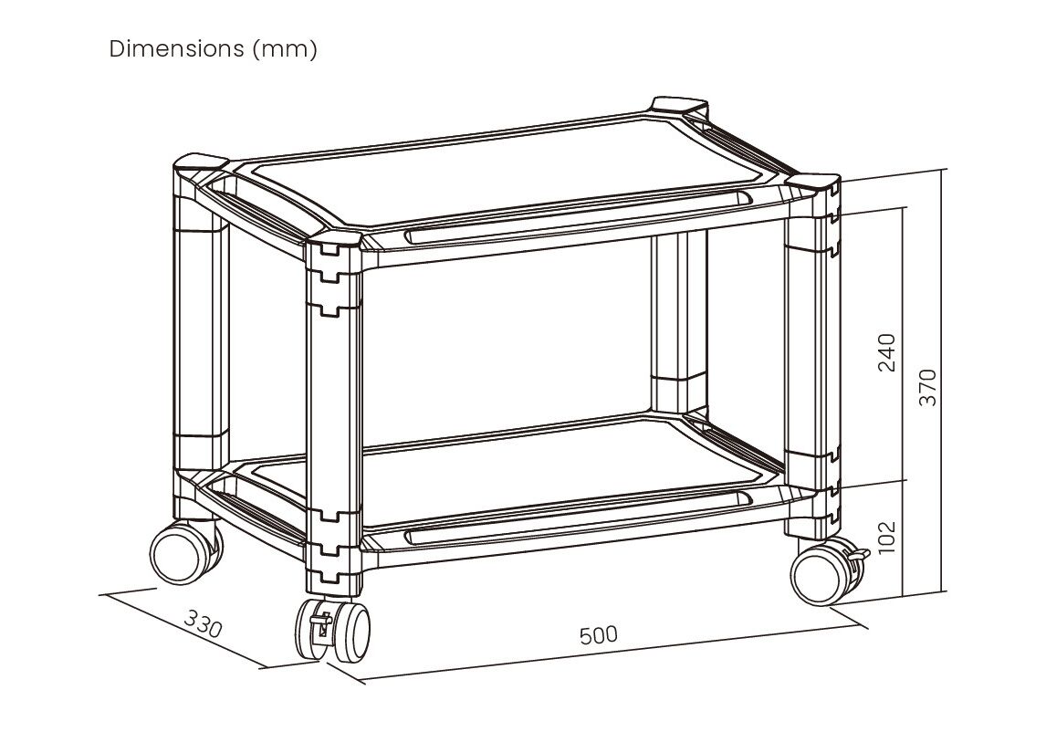 BRATECK ραφιέρα δαπέδου AMS-4L με ροδάκια, 2 ράφια, 50x33x37cm, έως 10kg, μαύρη
