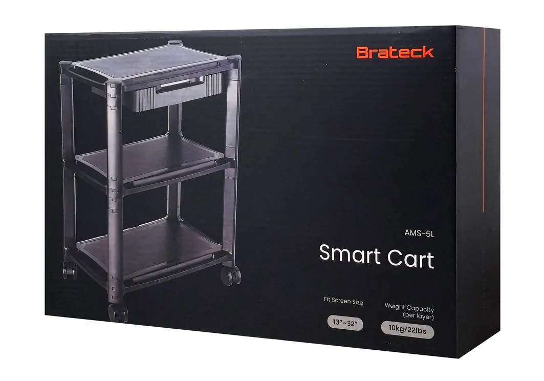 BRATECK ραφιέρα δαπέδου AMS-5L με ροδάκια, 3 ράφια, 50x33x63.5cm, έως 10kg, μαύρη