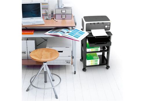 Ραφιέρα δαπέδου της Brateck με 3 ράφια και συρτάρι, ιδανική για την τοποθέτηση περιφερειακών συσκευών PC όπως εκτυπωτές και άλλων ειδών γραφείου και αξεσουάρ.