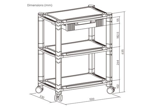 Διαθέτει ροδάκια με μηχανισμό κλειδώματος για την εύκολη μεταφορά της ραφιέρας.