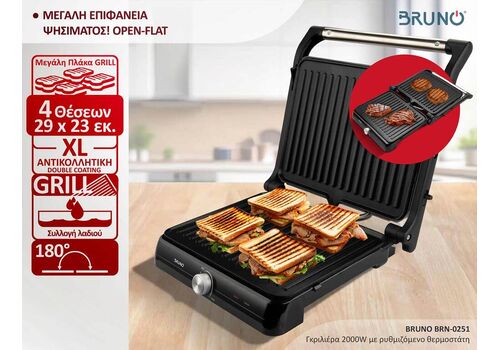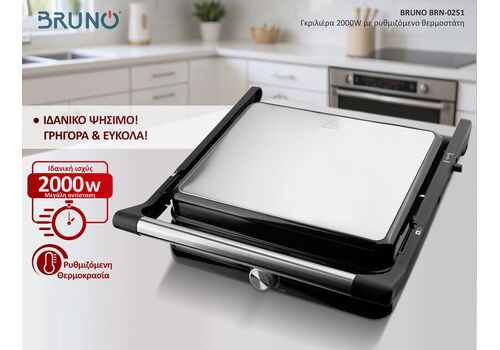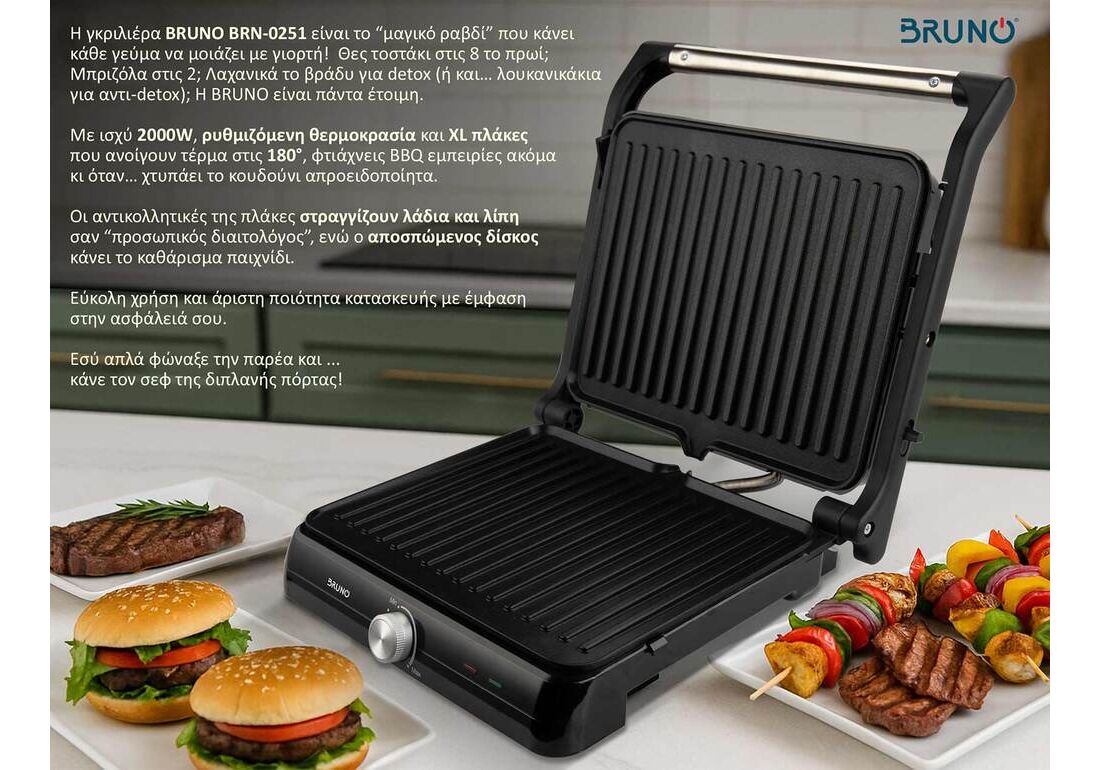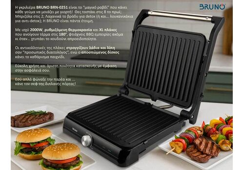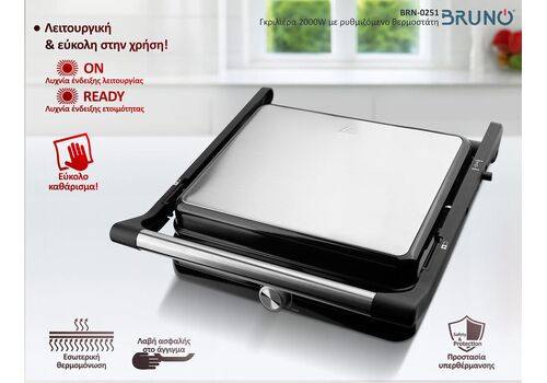 Η Γκριλιέρα BRUNO BRN-0251 αποτελεί ιδανική λύση για ετοιμασία πληθώρας σπιτικών snack, σάντουιτς, τοστ, κρεατικών, αλλαντικών, λαχανικών κτλ γρήγορα και εύκολα.
