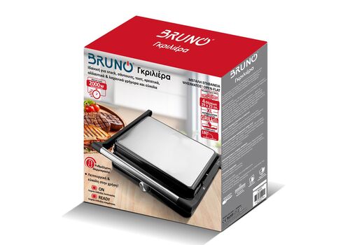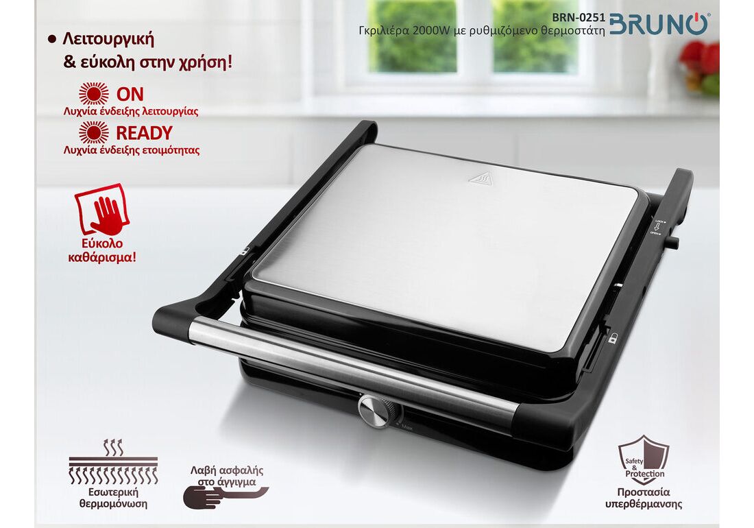 BRUNO BRN-0251 Γκριλιέρα 2000W με ρυθμιζόμενο θερμοστάτη, inox-μαύρη