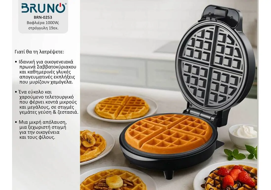 Η συσκευή βάφλας BRUNO BRN-0253 φέρνει οικογένεια ή φίλους γύρω από το τραπέζι, με λαχταριστές, αφράτες βάφλες που ψήνονται σε χρόνο ρεκόρ!