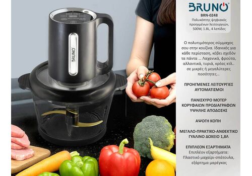 BRUNO Πολυκόπτης προηγμένων λειτουργιών, ψηφιακός BRN-0248, 500W, 1.8L, 4 λεπίδες, μαύρος
