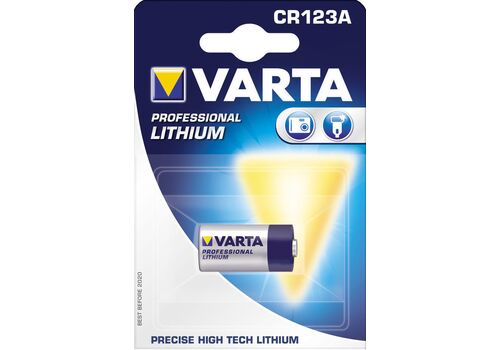 Μπαταρία λιθίου Professional Lithium της Varta. Είναι ιδανική για φακούς, ψηφιακές φωτογραφικές μηχανές, κάμερες και φλας. Μπορεί επίσης να χρησιμοποιηθεί σε εξοπλισμό ασφαλείας, αισθητήρες ασφαλείας και ανιχνευτές καπνού.