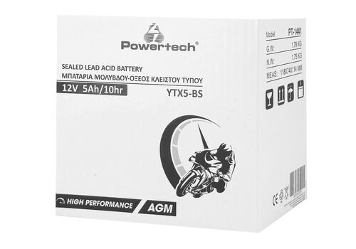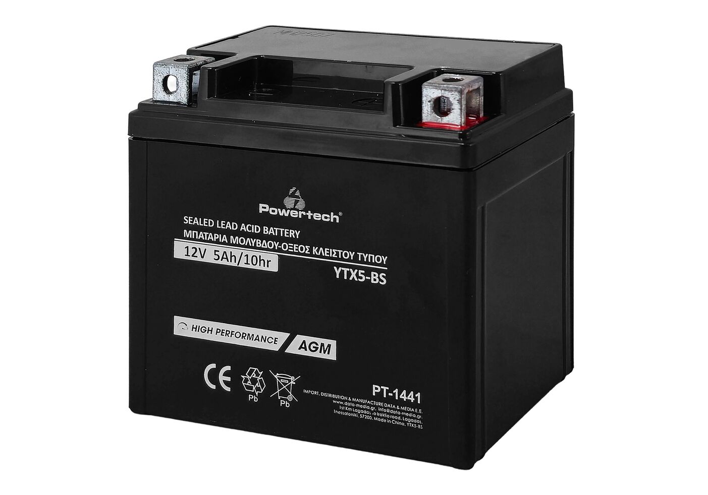 POWERTECH μπαταρία μολύβδου μοτοσυκλέτας PT-1441, 12V 5Ah, AGM, YTX5-BS