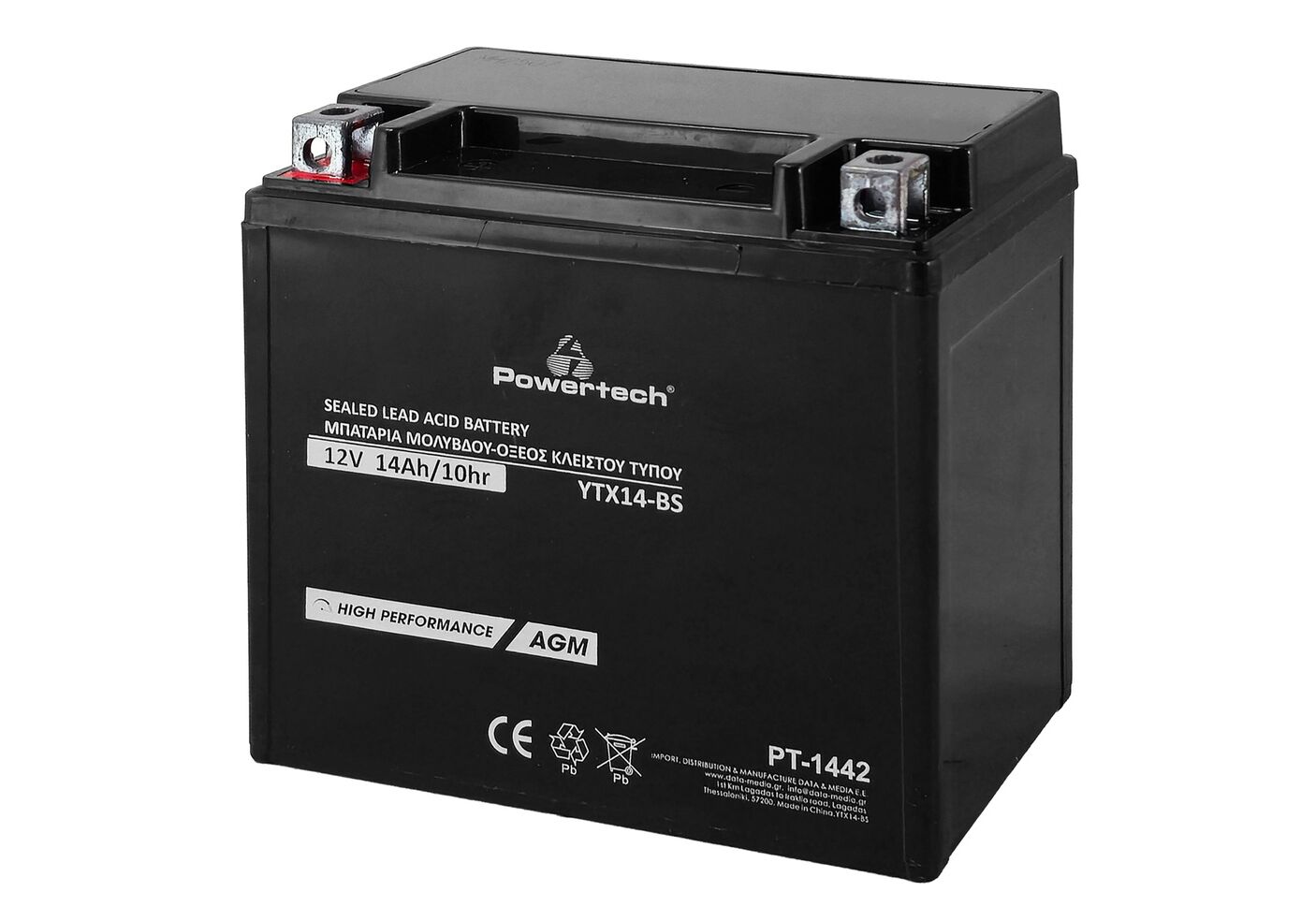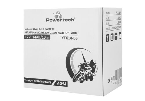 POWERTECH μπαταρία μολύβδου μοτοσυκλέτας PT-1442, 12V 14Ah, AGM, YTX14-BS