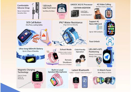 Σχεδιασμένο για να διατηρεί τους μικρούς εξερευνητές συνδεδεμένους και προστατευμένους, αυτό το smartwatch προσφέρει προηγμένες λειτουργίες επικοινωνίας, εντοπισμού θέσης και ανθεκτικότητας.
