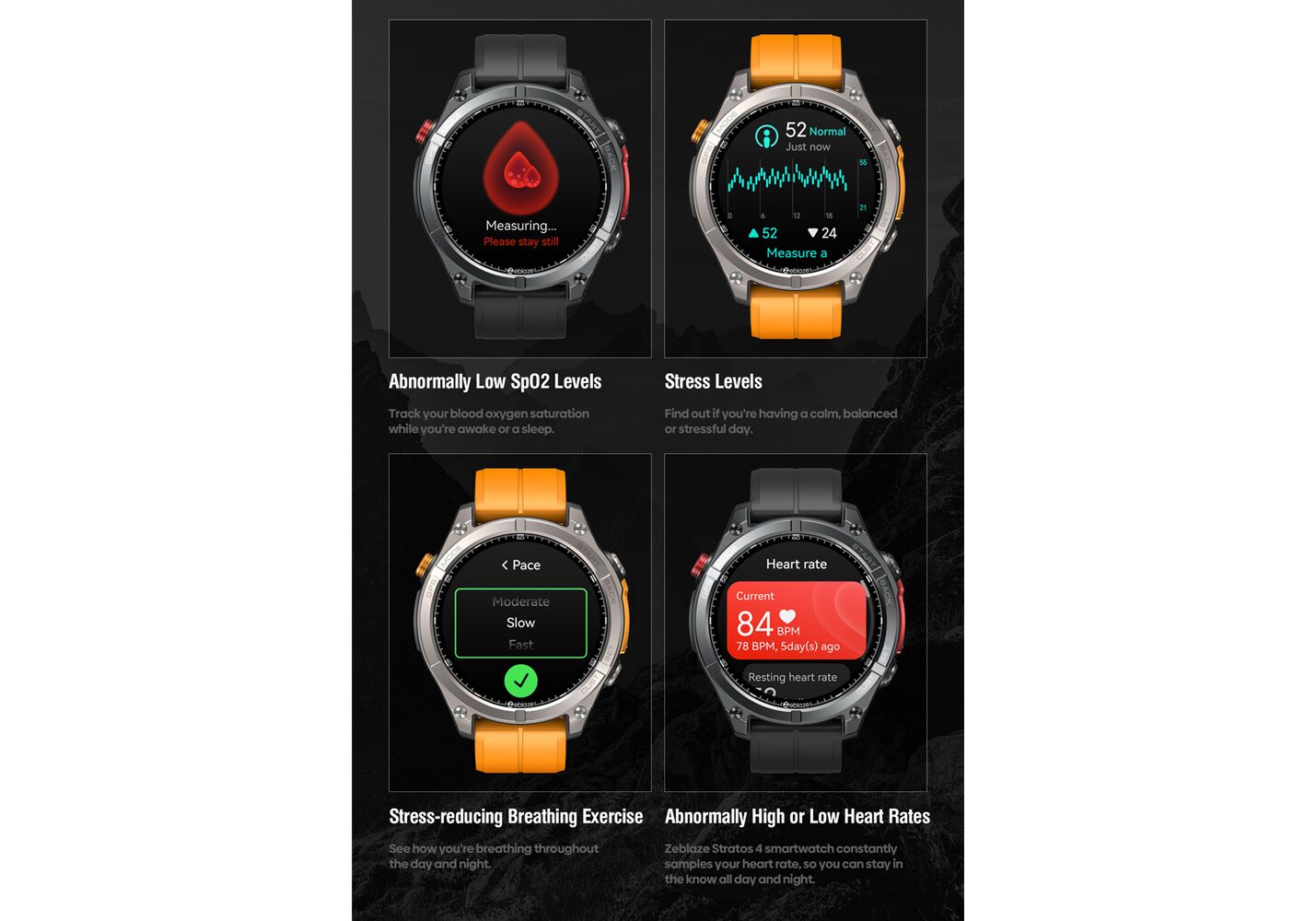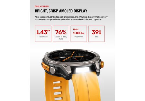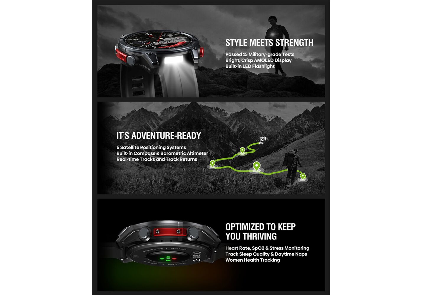 ZEBLAZE smartwatch Stratos 4 με φακό, heart rate, 1.43" AMOLED, GPS, 5 ΑΤΜ, MIL-STD-810H, μαύρο