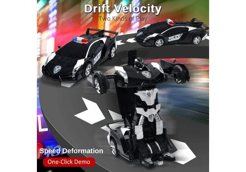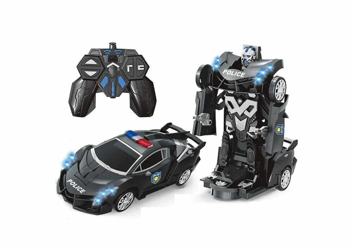 Αυτό το τηλεκατευθυνόμενο αυτοκίνητο κινείτε εμπρός και πίσω από την τηλεκατεύθυνσή και με το πάτημα ενός κουμπιού που βρίσκετε στο κοντρόλ μπορεί να μετατραπεί σε ρομπότ σε μόλις 2 δευτερόλεπτα.