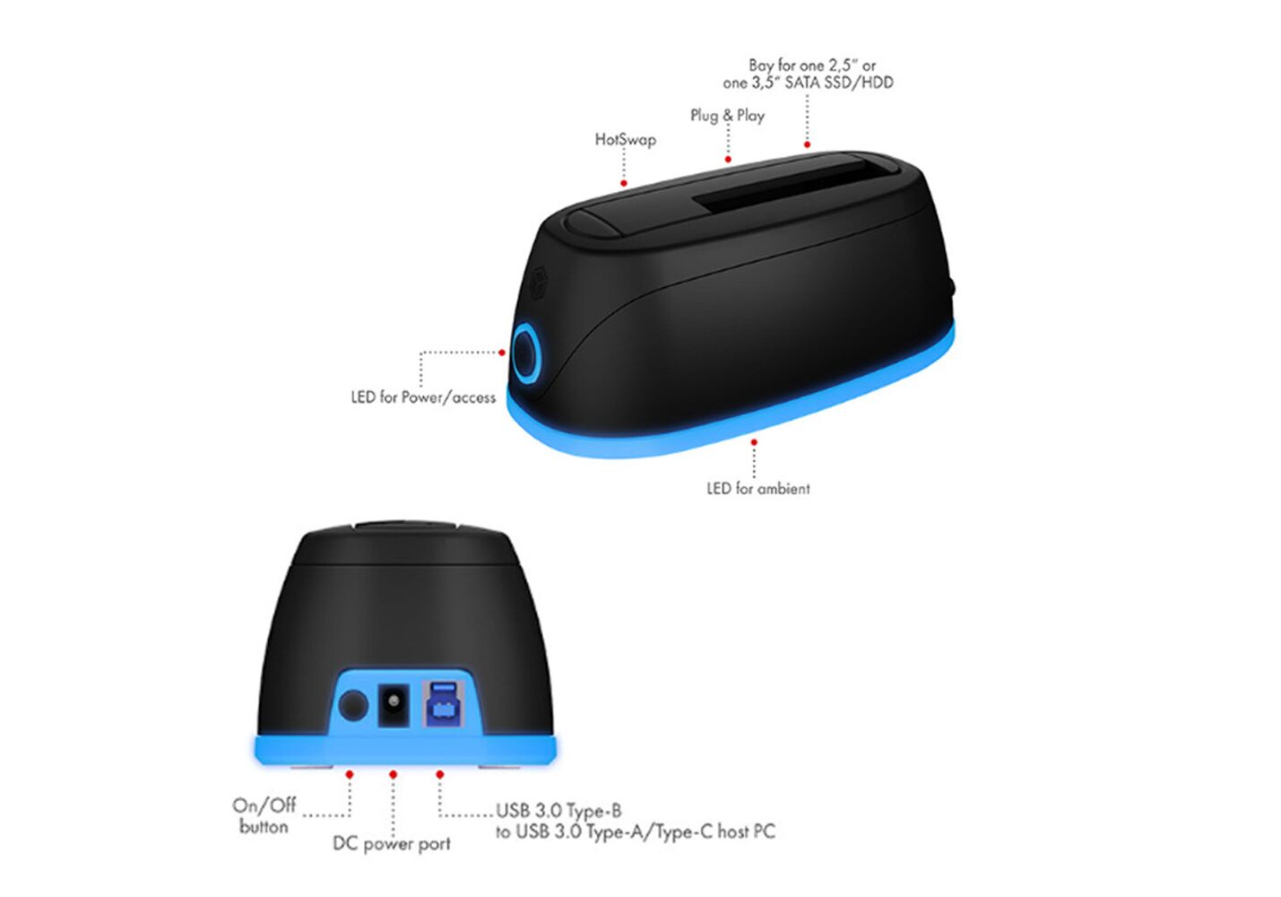 ICY BOX LED DOCKING STATION FOR HDD/SSD WITH TYPE-C/USB 3.2 COMBO CABLE