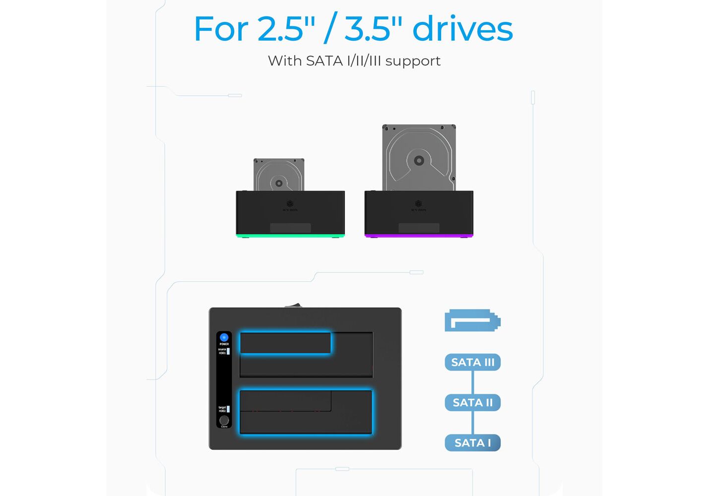 Docking & Clone Station για 2x HDD/SSD με Θύρα USB 3.0 Type-A & Type-C® και RGB Φωτισμό