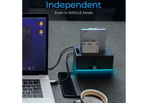 Μοναδική Λειτουργία: Οι δύο σκληροί δίσκοι αναγνωρίζονται και εμφανίζονται ανεξάρτητα από το λειτουργικό σύστημα. Χάρη στη λειτουργία HotSwap, μπορούν να συνδεθούν και να αποσυνδεθούν εύκολα.