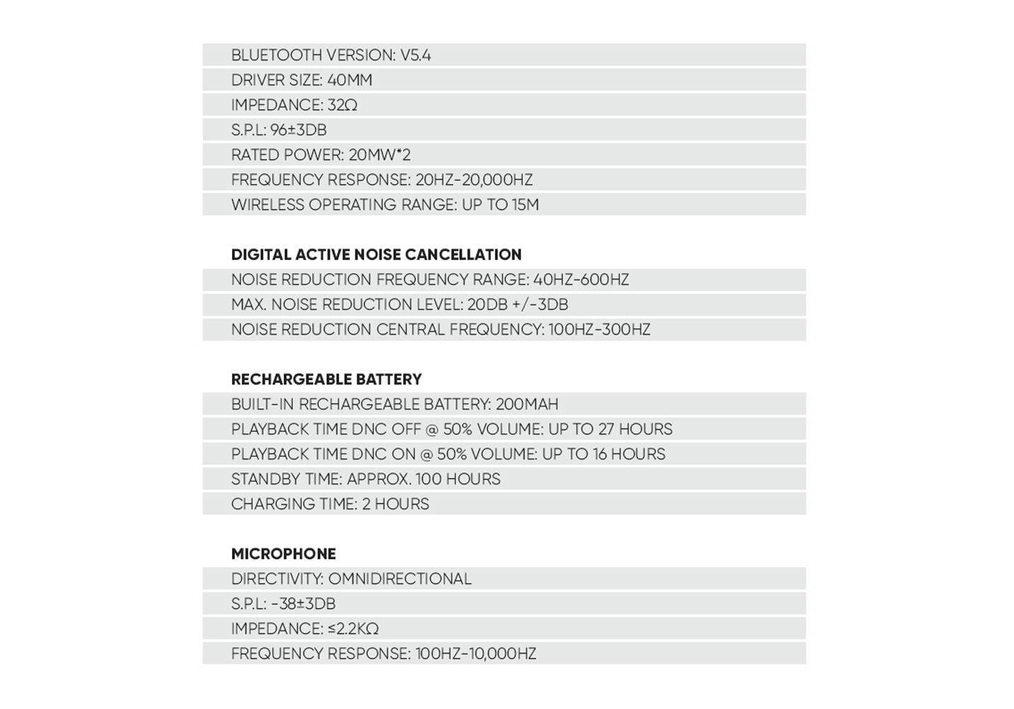 -Bluetooth 5.4: Εξασφαλίζει σταθερή και γρήγορη ασύρματη σύνδεση, για αδιάκοπη ακρόαση χωρίς καθυστερήσεις.