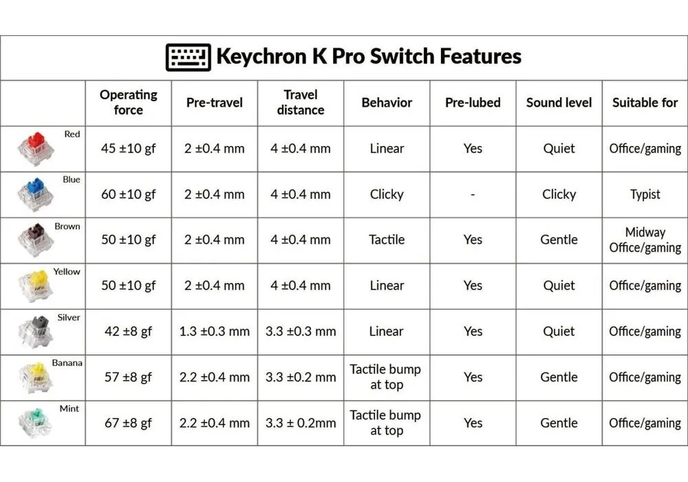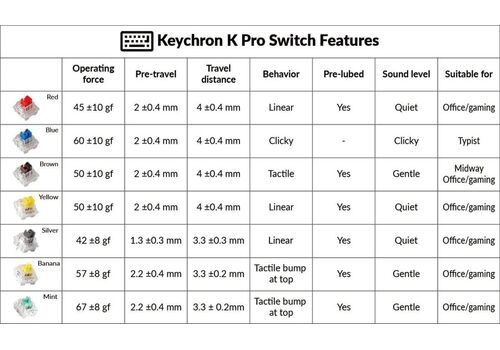 Οι διακόπτες Keychron K Pro είναι εργοστασιακά προ-λιπανμένοι , γεγονός που έχει μειωμένο θόρυβο ελατηρίου και λιγότερη ταλάντωση στελέχους. Αν θέλετε να απολαμβάνετε μεταξένια απαλότητα και φυσική αίσθηση πληκτρολόγησης, τότε πρέπει να επιλέξετε τον διακόπτη Keychron K Pro.