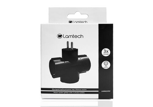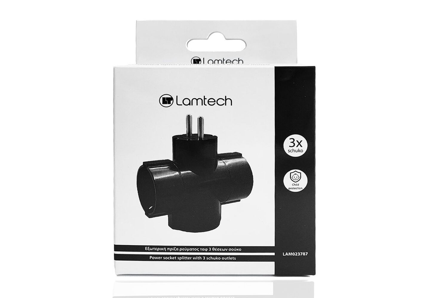 LAMTECH Αντάπτορας Ρεύματος ΤΑΦ με 3 Υποδοχές Schuko (Μαύρο)