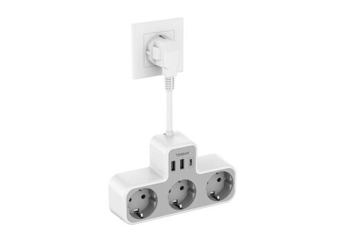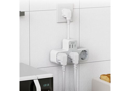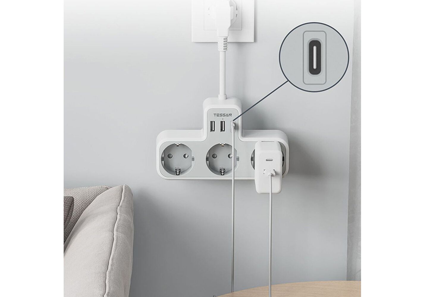 Το TESSAN TS-323X-C προσφέρει 3 πρίζες AC, 1 θύρα USB-C και 2 θύρες USB-A, επιτρέποντάς σας να φορτίζετε πολλές συσκευές ταυτόχρονα. Με συμπαγές μέγεθος 12,3 x 6,6 cm και κοντό καλώδιο 15 εκ., καταλαμβάνει ελάχιστο χώρο ενώ προσφέρει μέγιστη ισχύ έως 3600 W.