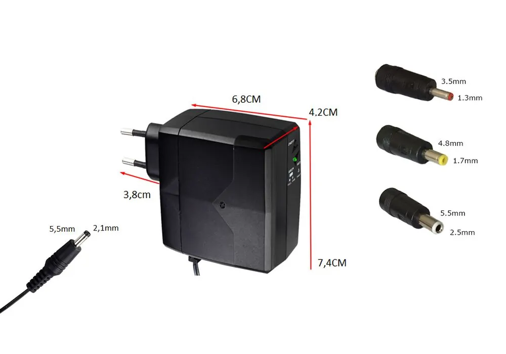 Output cable: DC Male Jack, OD 5.5mm, ID 2.1mm, 1m