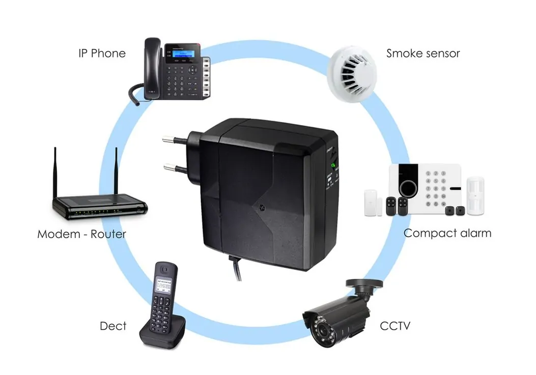 Mini UPS με επαναφορτιζόμενη μπαταρία Samsung, ιδανικό για χρήση σε συσκευές χαμηλής κατανάλωσης.