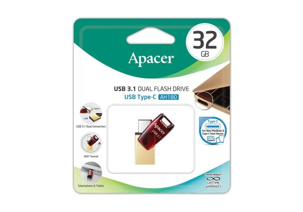Η μνήμη Flash Drive AH180 32GB είναι μια φορητή συσκευή αποθήκευσης που προσφέρει συνδεσιμότητα USB 3.2 Gen και συμβατότητα τύπου USB-C.
