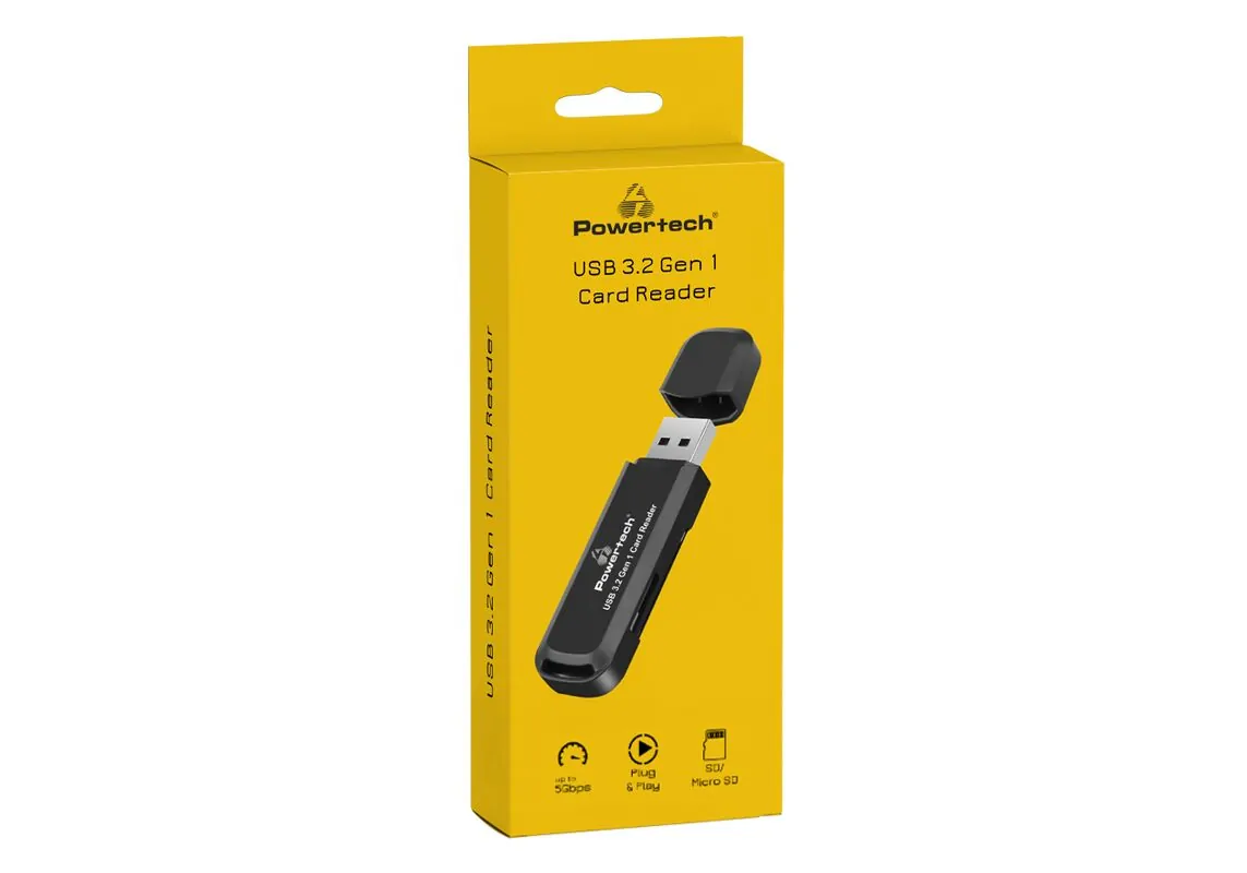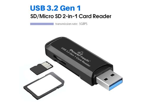 POWERTECH card reader PT-1112 για SD & micro SD, USB 3.2, 5Gbps, μαύρο