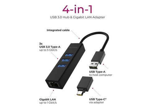 IB-HUB1419-LAN – 4-Θύρες Hub με USB 3.0 και Gigabit LAN