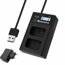 Powerextra DS-W126 Dual Battery Charger with USB AC/DC Power Adapter and LCD Display fo...