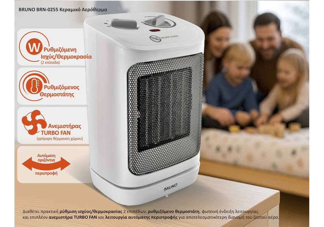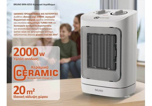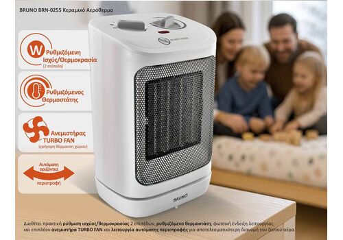 Το Κεραμικό Αερόθερμο BRUNO BRN-0255 είναι ιδανικό για γρήγορο και αποτελεσματικό ζέσταμα μικρών εσωτερικών χώρων και δωματίων και κρίνετε απαραίτητο για ένα νοικοκυριό ως βοηθητική-εναλλακτική λύση σε χώρους με ελλιπή θέρμανση.